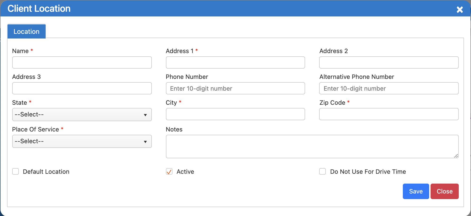 Do Not Use For Drive Time - If selected, the drive time of the provider will not be recorded for to mentioned location (Checkbox)