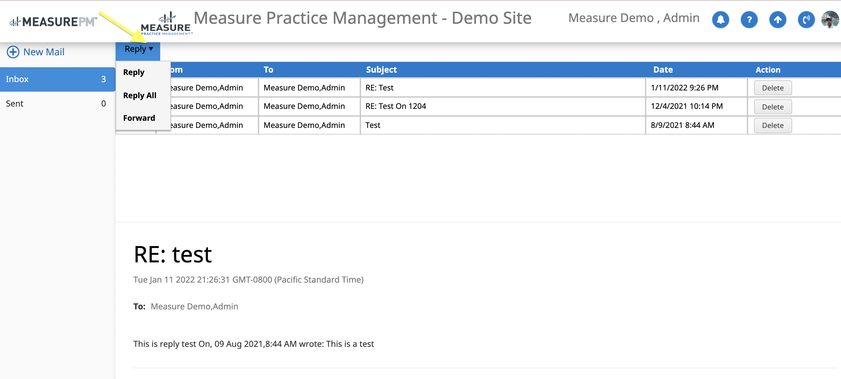 Select the email by clicking on the check box you want to reply to. Click on the 'Reply' drop-down as shown below and reply.