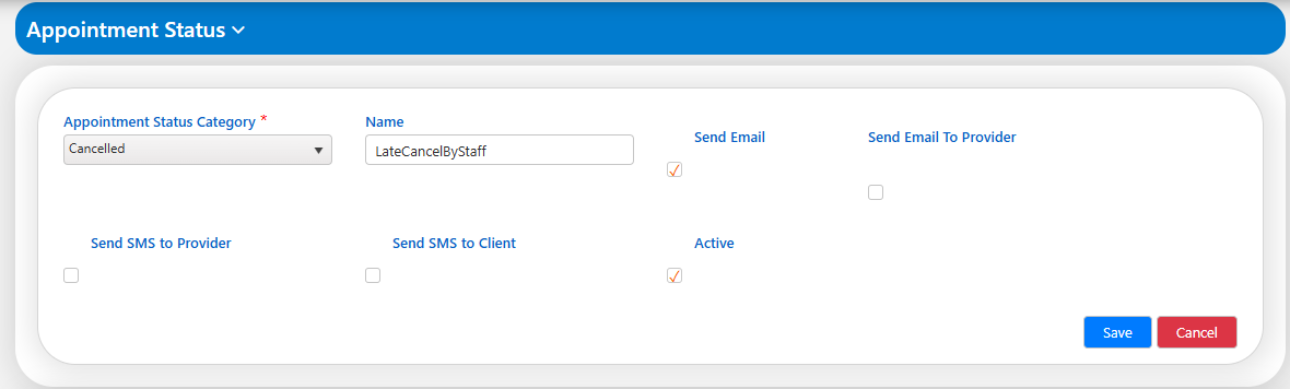 In this section, users are able to add an appointment status category as per convenience or requirement. To add a new appointment status, click on the 'Appointment Status' drop-down arrow as shown in the figure below: