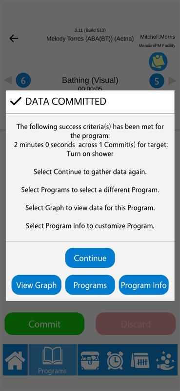 - If no trends were detected the notification will appear as it does below. Users may choose between View Graph, to view/manipulate the graph for that program, Continue, to return to the data collection screen for the same program, or Programs to return to the program list. **updated image**