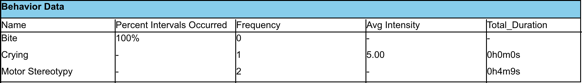Behavior Data Summary |