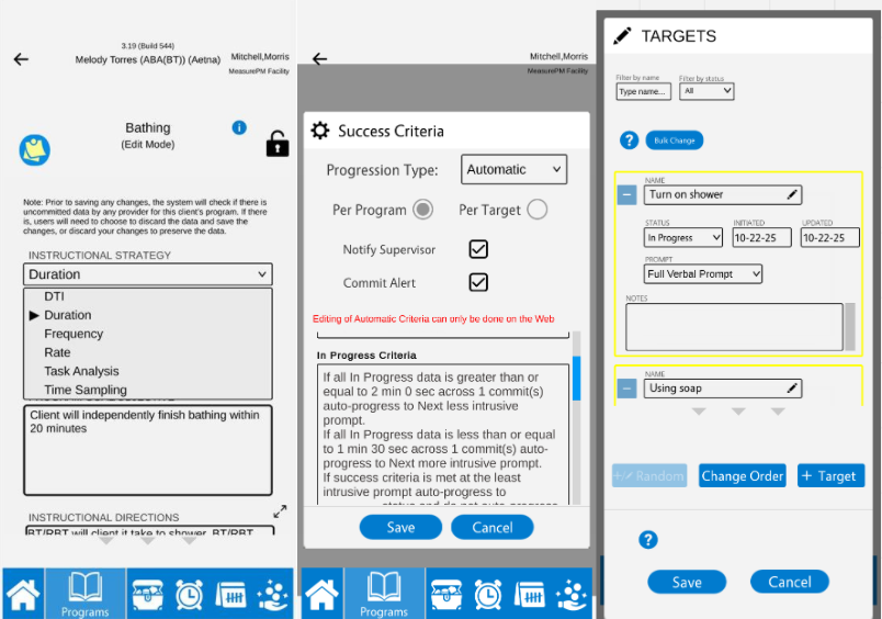 In addition to being able to configure programs on the web, users can also configure programs on the Mobile-App. To do so, the programs must be mapped to a Clinical Profile. Mapping programs can be done on both the Web and Mobile-App. Once mapped, you can proceed with changes on the client level. From the Mobile-App, no changes can be made to programs in the library.