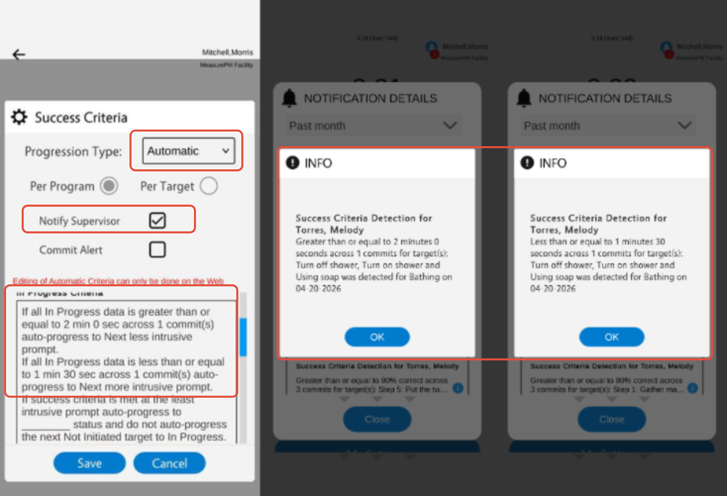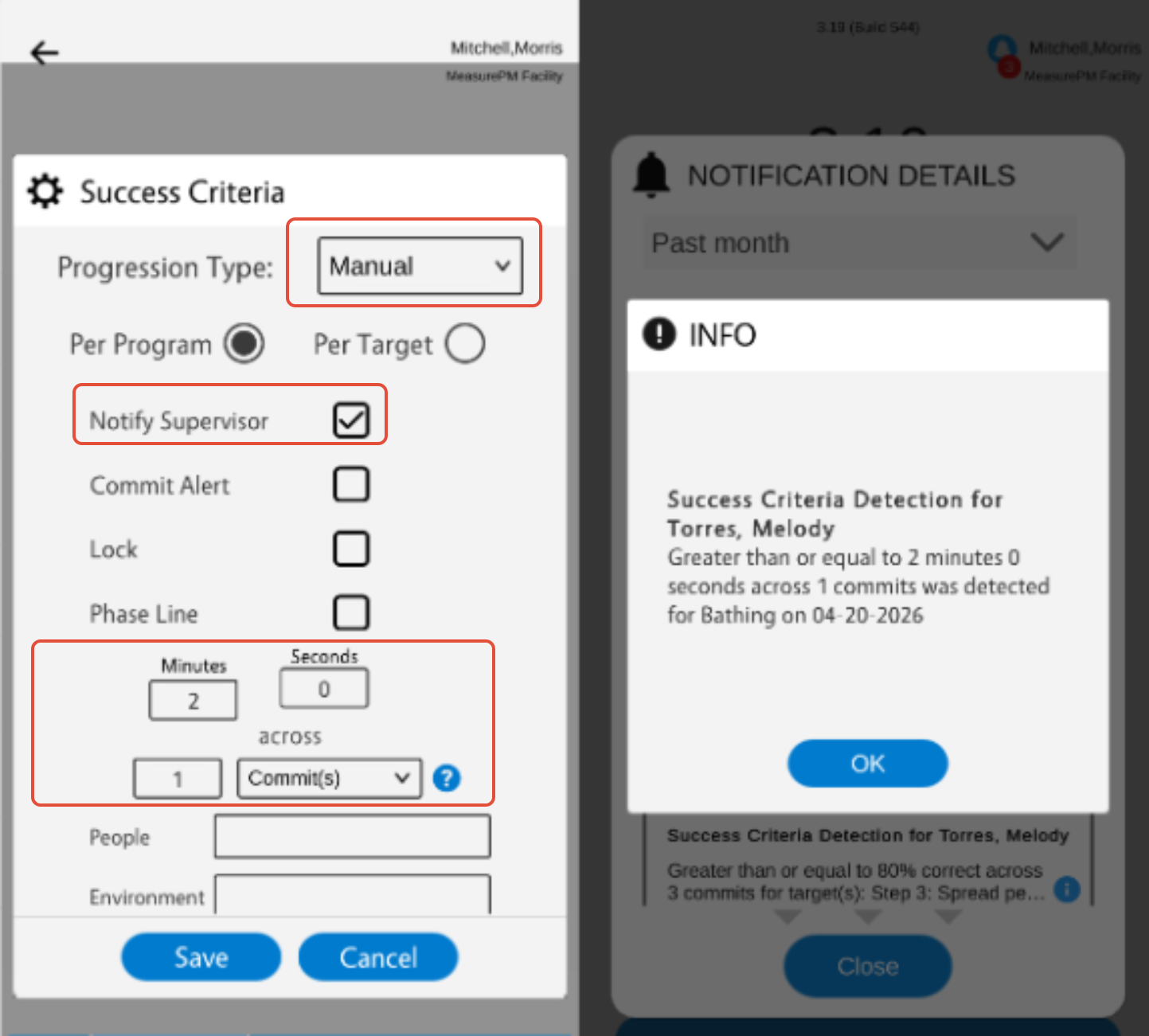 Notify Supervisor- If this option is selected, the individuals outlined as supervisors in the clinical profiles will be alerted that success criteria was detected via notifications.
