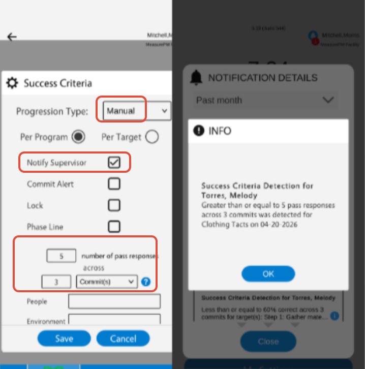 Notify Supervisor- If this option is selected, the individuals outlined as supervisors in the clinical profiles will be alerted that success criteria was detected via notifications.
