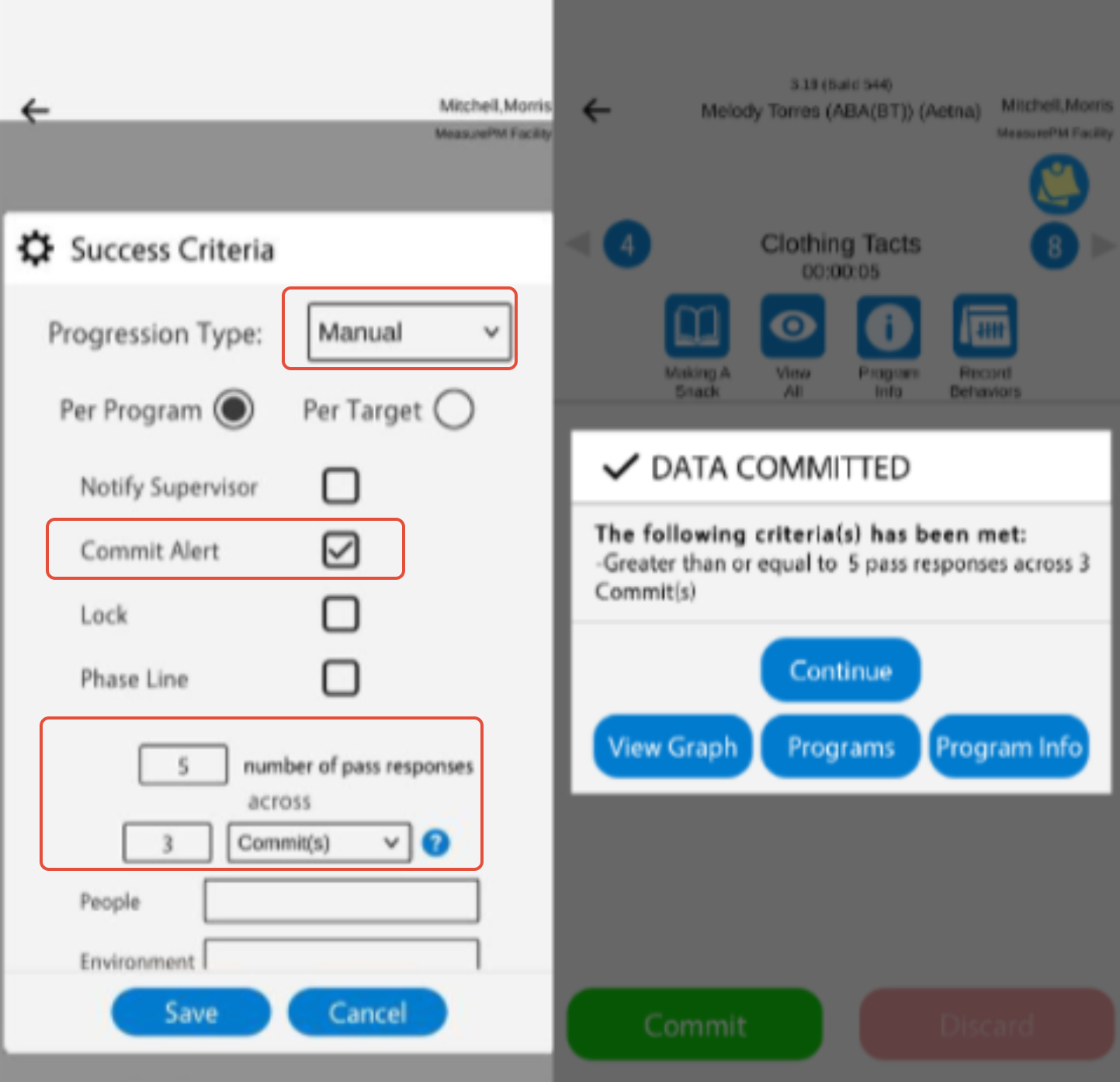 When configuring success criteria for a Frequency program you will be entering the total number of pass responses needed to achieve mastery criteria (applicable for manual and automatic progression), and/or entering the total number of pass responses applicable to trigger revisions criteria (applicable for auto progression only).