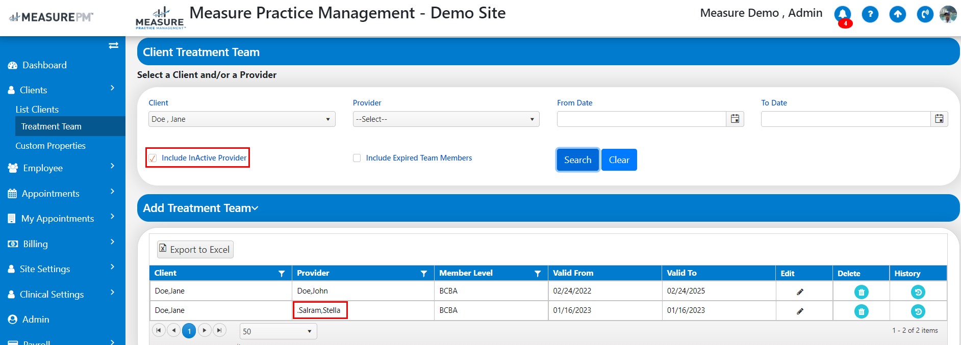 By enabling "Include Inactive Provider", you can view the treatment teams with the providers those are not active.