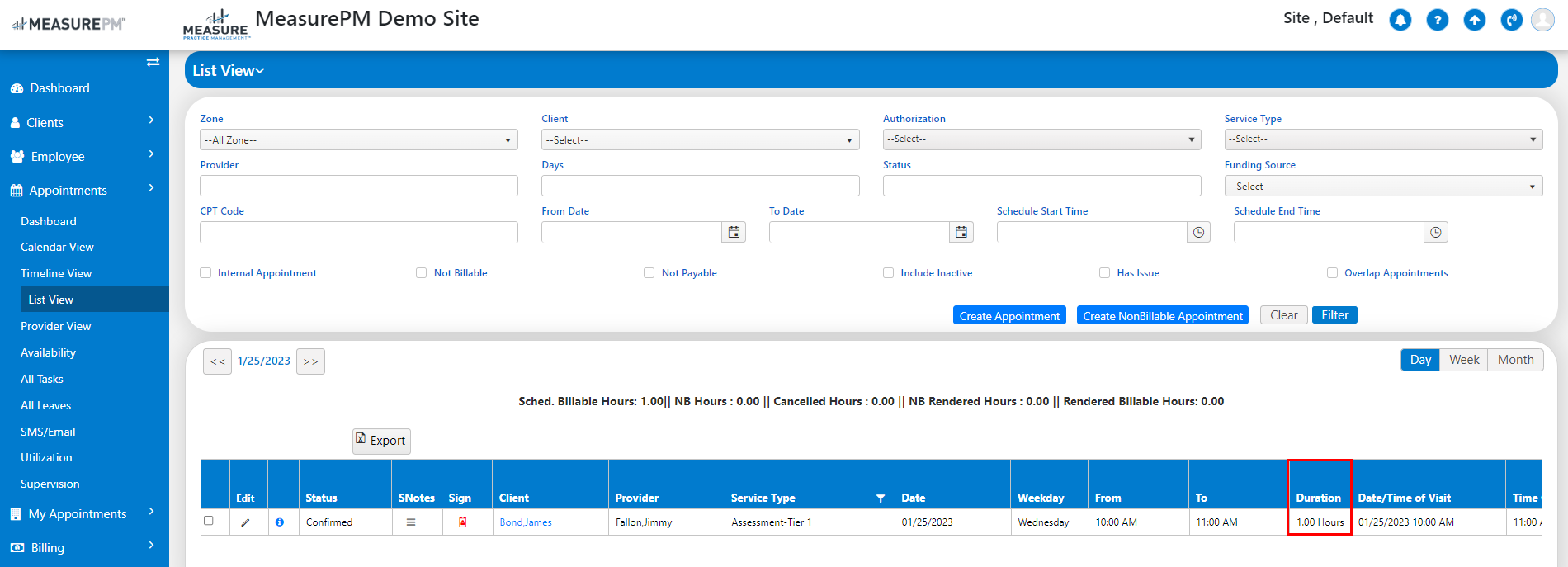 Now when you will render the session the duration column will update and show the duration hours of rendered hours instead of scheduled hours.