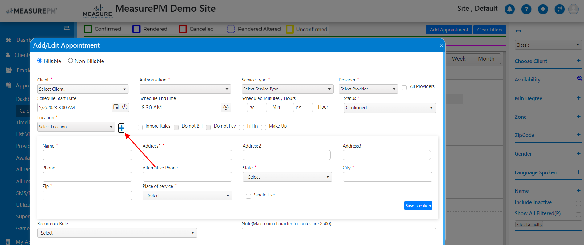 If this permission is enabled for the group then the group members would be able to add the location under Appts.