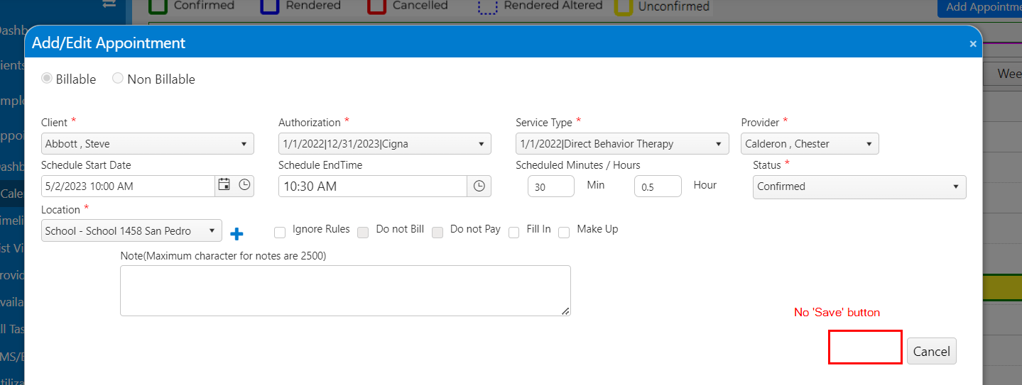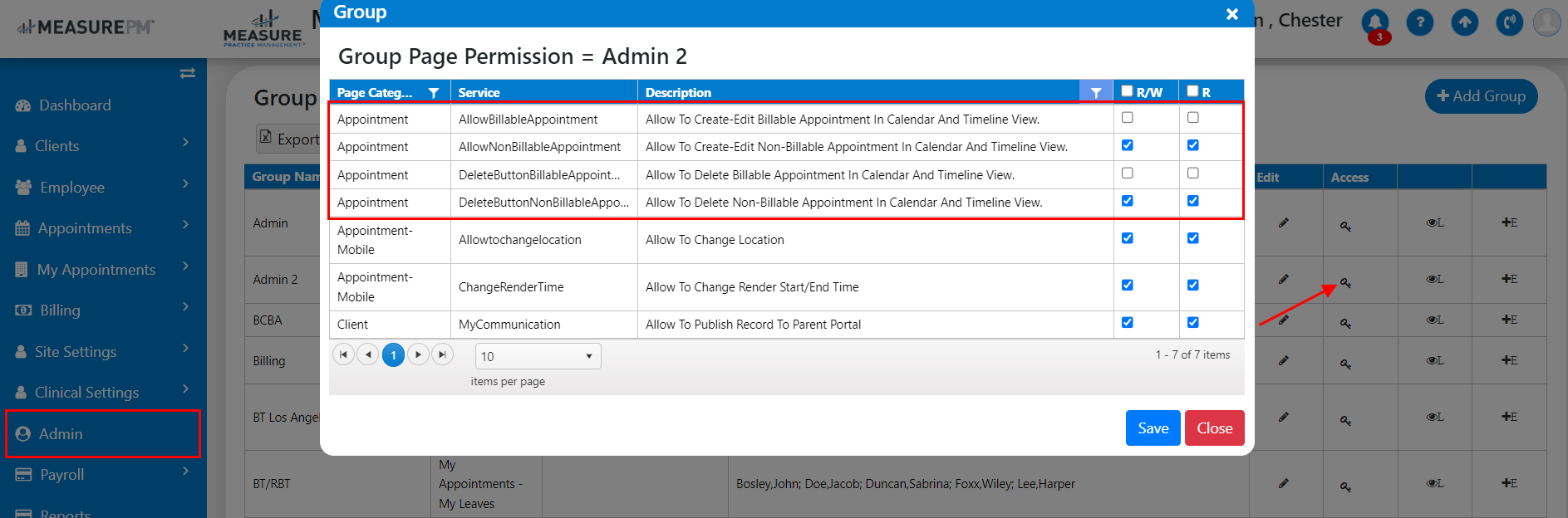 We have added the below new permissions for Adding/Editing/Deleting the Appts separately for billable and non-billable appts.