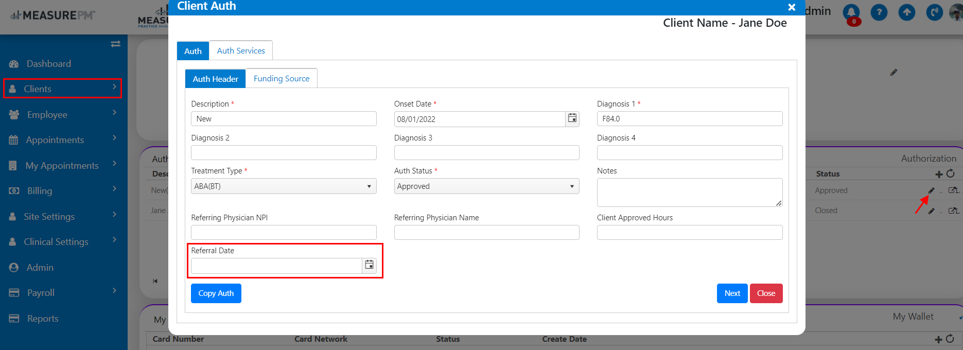 For a quick glance here is a video - Adding Referral Date Via Date Picker to Client Auth Details Page