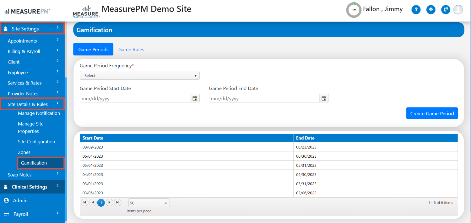 Within MeasurePM, this module allows sites to customize games for employees with the goal of accumulating points for completion of predetermined actions. For example, an employee can earn points for rendering appointments with a provided signature and submitting SOAP Notes on the day of service. An employee can also earn optional bonus points for rendering appointments within specific time frames, and submitting timesheets by the conclusion of the pay period.