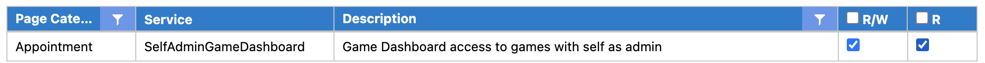 To access the Web-App’s Game Dashboard, one the following permissions must be granted: