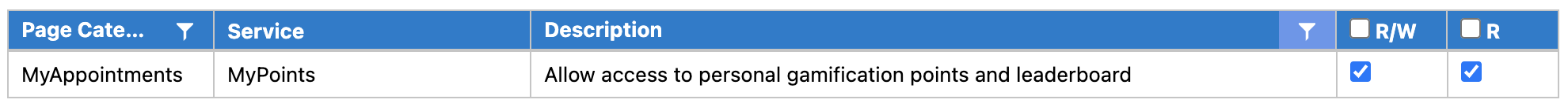 To access the My Points pages on the Web or Mobile-App, the following permission must be granted: