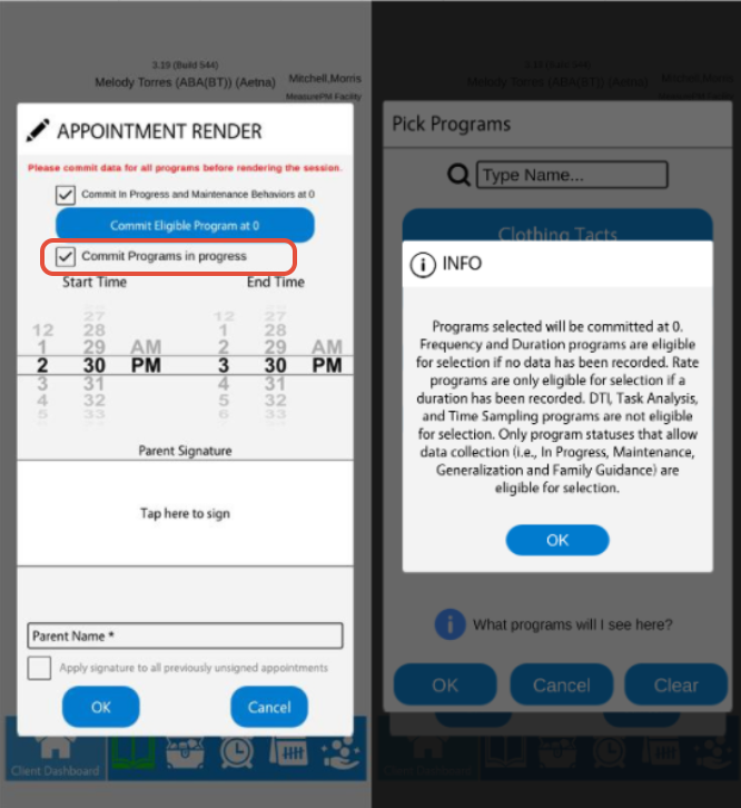 When rendering an appointment, providers are given choices regarding the client's programs and behaviors.