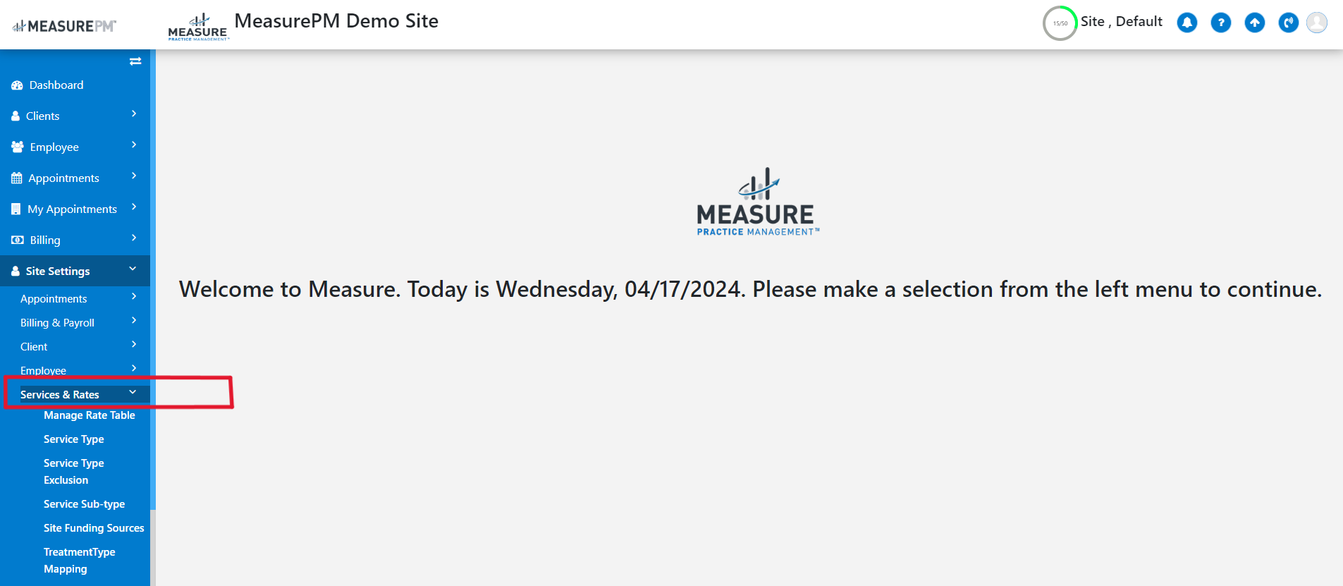 Step 2: Click 'Services and Rates' on the submenu. (As shown in the image below)