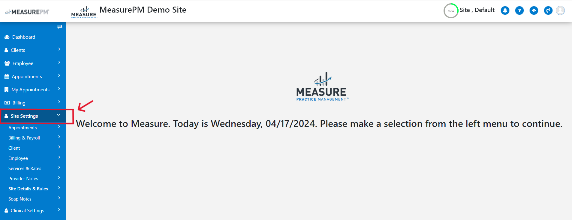 Step 1: Click 'Site Settings' on the menu tap. (As shown in the image below)