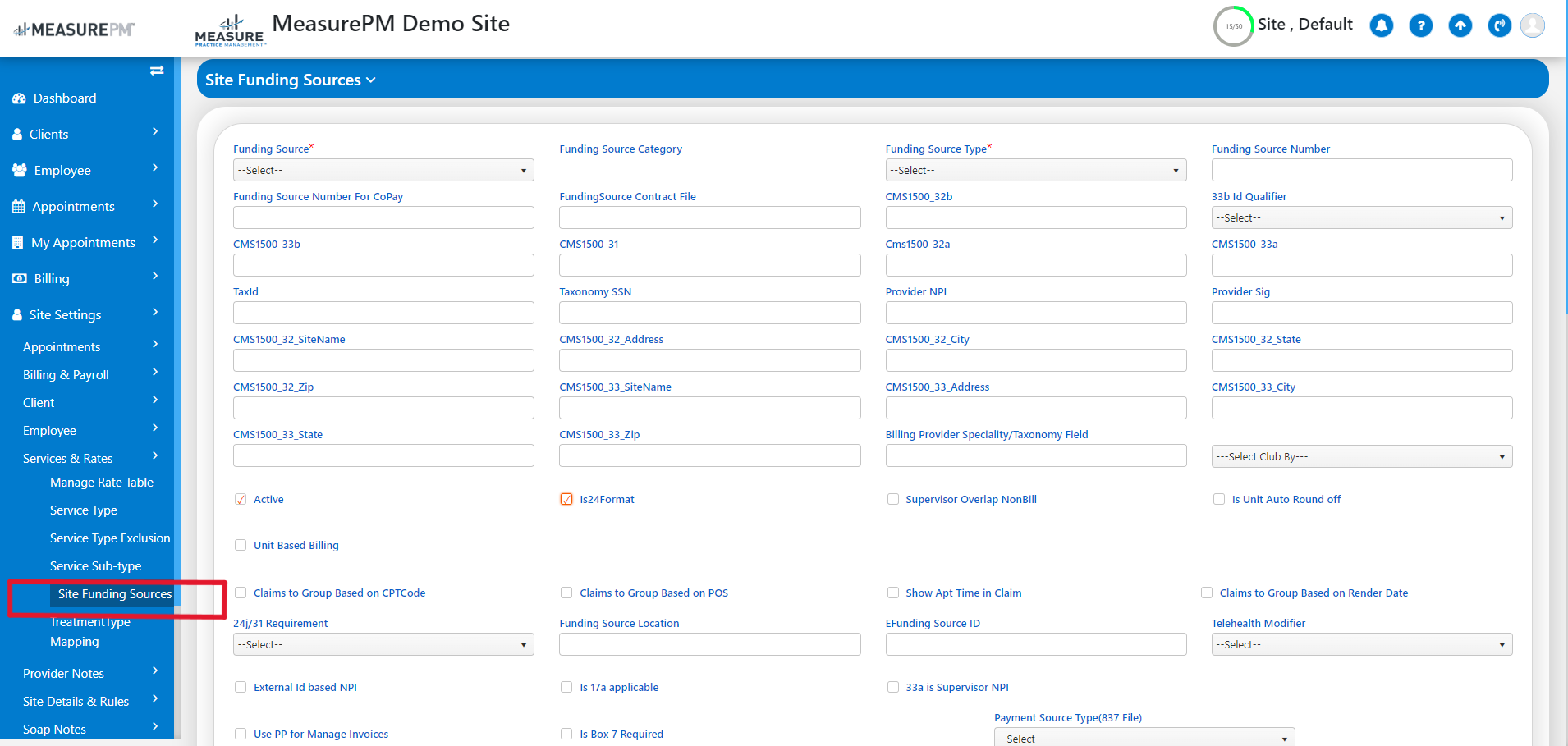 Step 3: Click 'Site Funding Sources" on the submenu. (As shown in the image below)