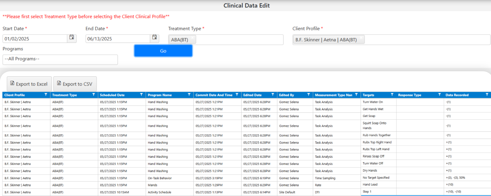 This report provides a view of all notes linked to specific targets within client programs at the time of commit. It allows users to review supervisor configured or provider-entered notes associated with committed data entries, offering insight into instructional directions or adjustments, client responses, or relevant session details. Records are only displayed for targets with committed data.