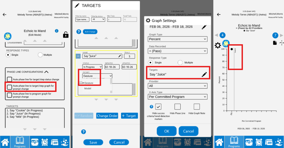 To have these phase lines enabled, simply select the corresponding checkbox beside each phase line type under the trial section in program configurations. Below is an example of what selecting the "Auto phase line to target/step graph for prompt change" appears like on the Mobile-app, but the selection can be made from Web as well.