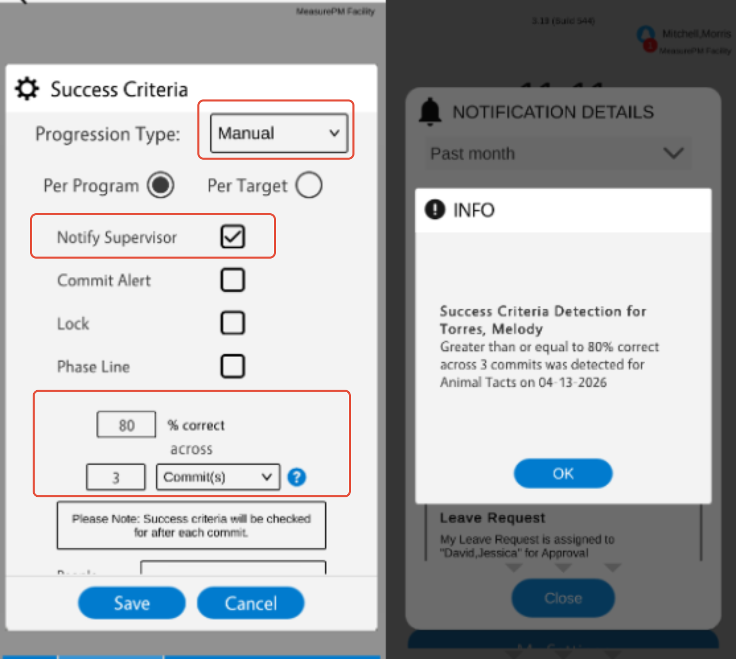 Notify Supervisor- If this option is selected, the individuals outlined as supervisors in the clinical profiles will be alerted that success criteria was detected via notifications.