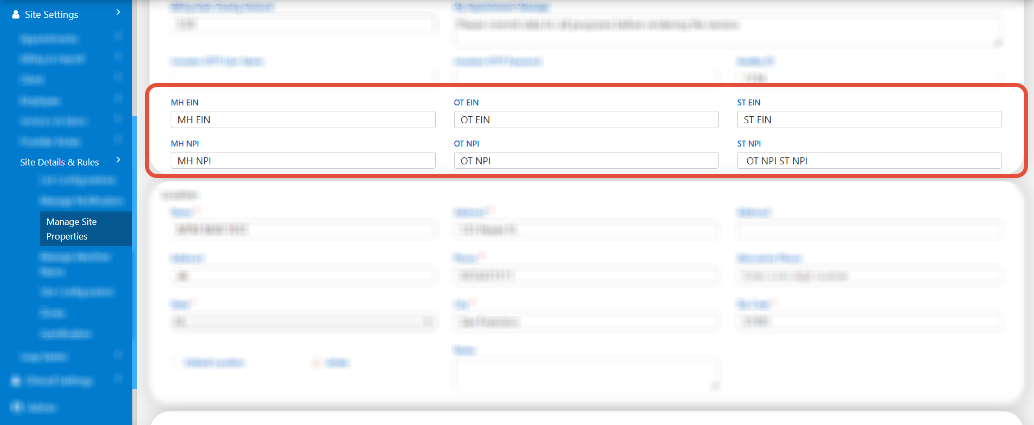 If no treatment-specific value exists, the system uses the main EIN/NPI from the top of your Site Details page.