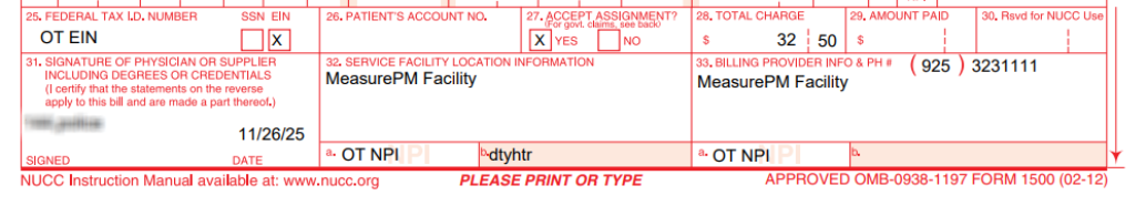 MeasurePM now checks the following in order when determining which EIN/NPI to place on a claim: